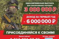 Единовременная выплата для заключивших контракт 3 000 000 рублей.