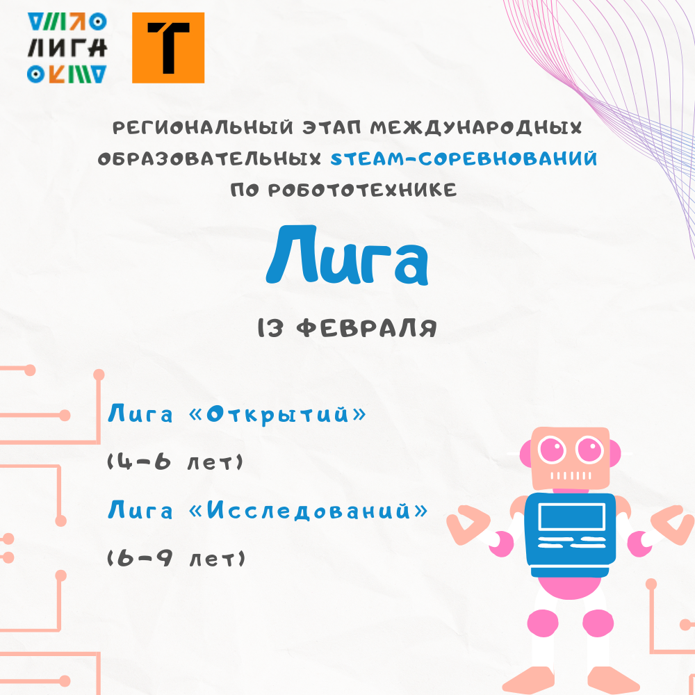 Соревнования будут проходить 13 февраля с 9:00 до 14:30. Помимо основной программы, гостей и болельщиков с 11:00 до 14:00 ждут открытые мастер-классы: «Цифровой креатив: погружение в мир веб-игр и современных технологий» и «Робототехника будущего: практическое освоение технологий».