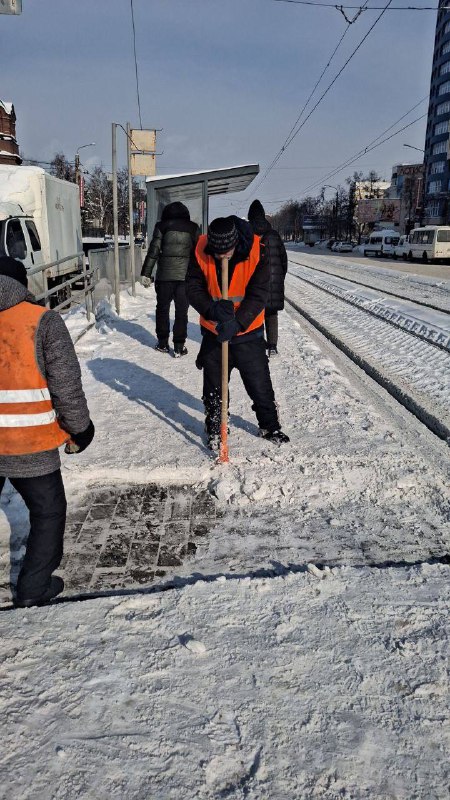Сегодня днем город расчищают 268 единиц техники и более 300 рабочих. Ведется уборка дорог, тротуаров, остановочных площадок, парковок и пешеходных переходов.