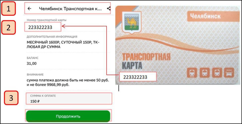 В приложении вашего банка (Сбер, Альфа-банк, Т-банк, ЧелябИнвестБанк) зайдите в раздел «Платежи» → «Транспорт» → «Транспортные карты». Выберите «Транспортная карта Челябинск» (или похожее название), введите номер карты.
