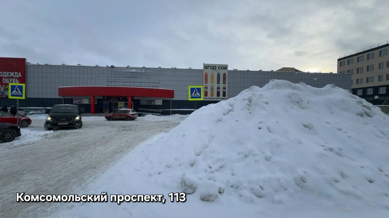 блей за невывезенный снег с парковки возле ТК «Комсомольский» по Комсомольскому проспекту, 113.