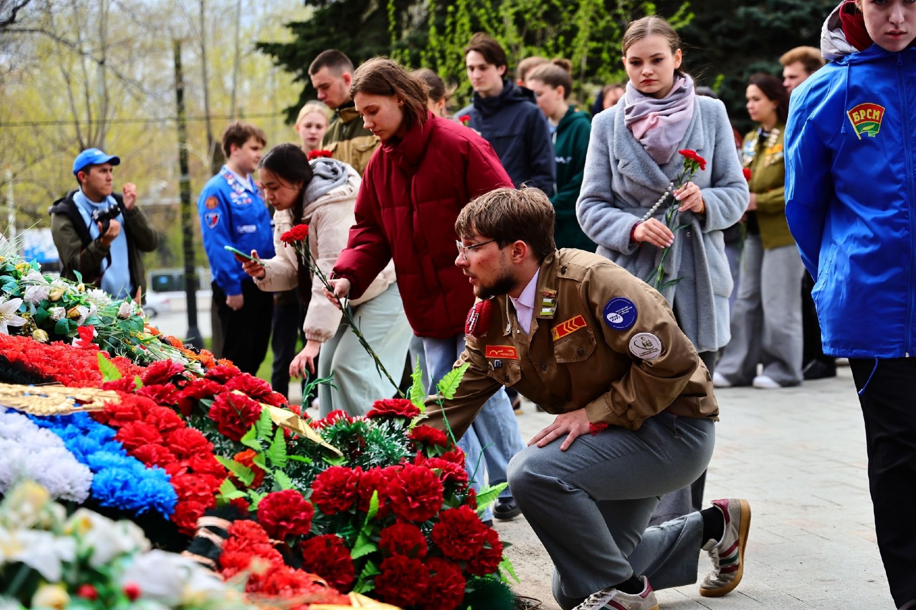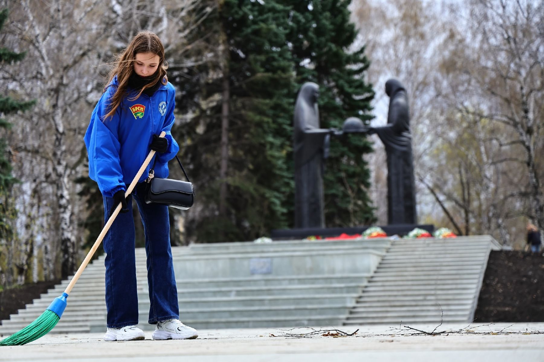 После уборки территории участники почтили память минутой молчания и возложили цветы к мемориалу.