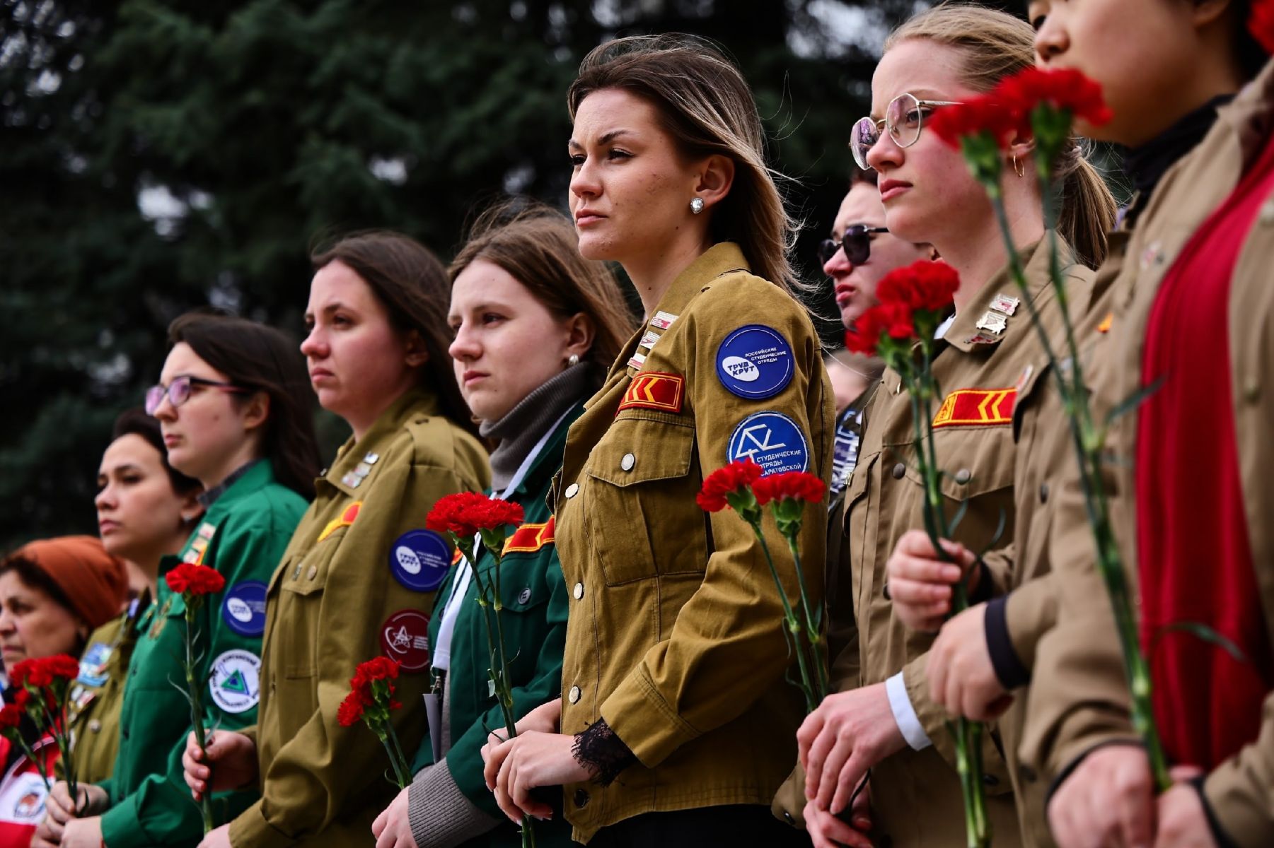 Участники слёта Союзного государства поучаствовали во Всероссийской неделе субботников «Мы за чистоту» и убрались на мемориале «Скорбящие матери».