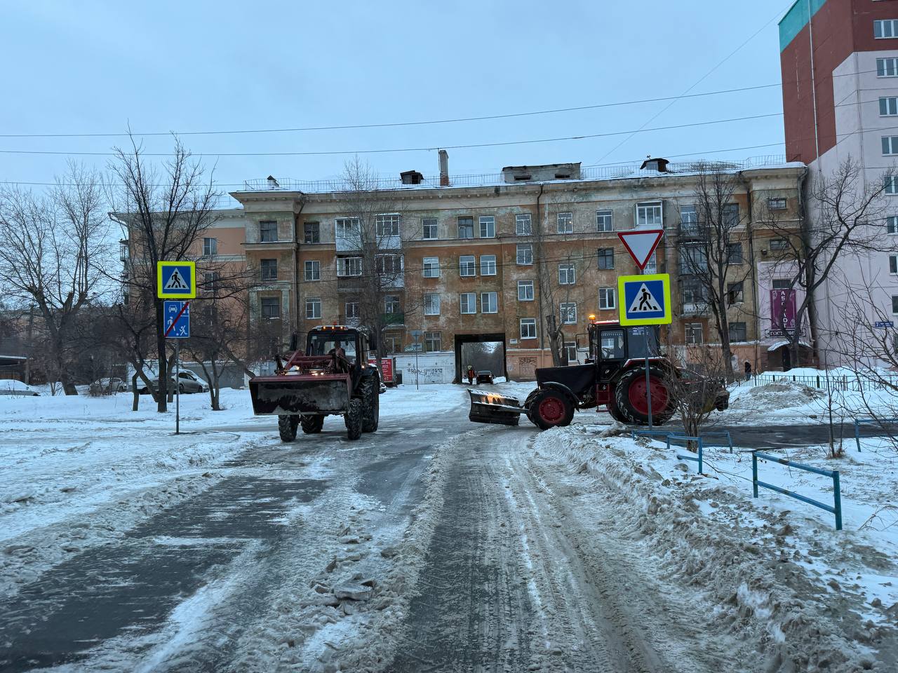В первую очередь расчищают выезды на центральные дороги, подъезды к социальным объектам и контейнерным площадкам.