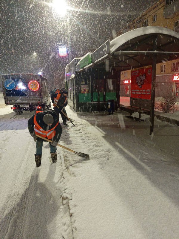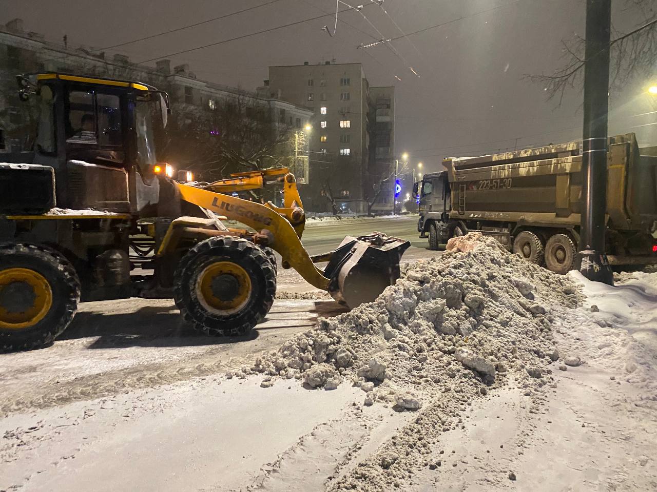 До утренних часов пик зачищались тротуары, остановки общественного транспорта и пешеходные переходы. Отдельный акцент на вывозе снега на полигон.
