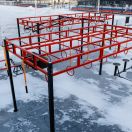Элементы смонтировали на ровном асфальтобетонном покрытии с использованием травмобезопасных матов, чтобы снизить ударное соприкосновение с основанием площадки. Это особопрочные конструкции, способные выдерживать интенсивное движение спортсменов на высоких скоростях.